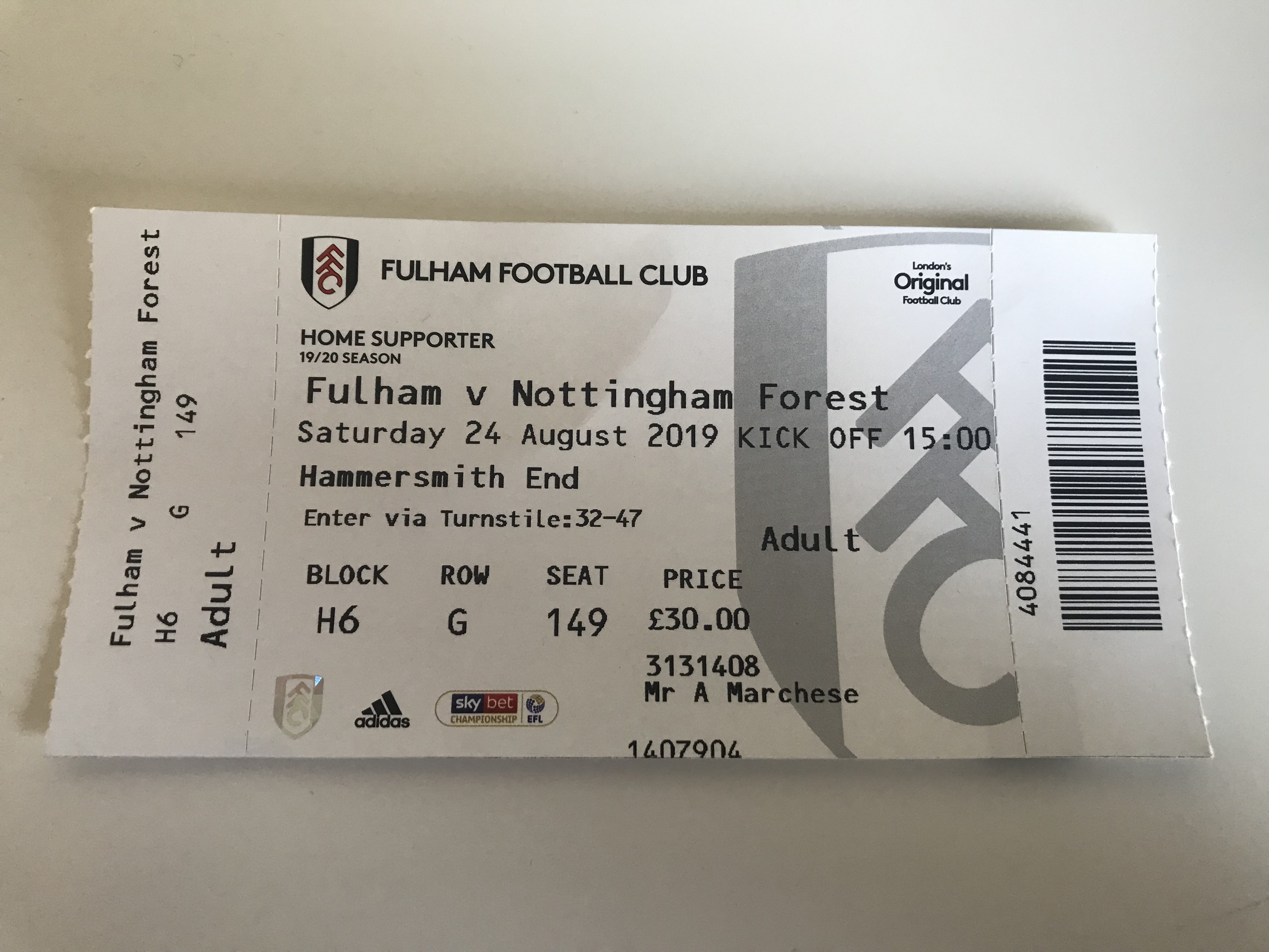 Una settimana fa, fortunatamente, decisi di acquistare un biglietto per assistere alla partita tra Fulham e Nottingham Forest, partita valevole per la 4^ giornata di Championship che si gioca nell’incantevole cornice del Craven Cottage.