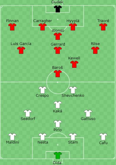 Finale! Ad attendere il Liverpool un Milan versione extra lusso che da almeno un biennio è rientrato nella top 3 del calcio europeo. Vittoria nel 2003, eliminazione sciocca per mano del Deportivo La Coruna nel 2004, finale nel 2005. In più un Hernan Crespo in rosa che l’anno prima non avevano. Ed è proprio l’argentino a firmare una doppietta che all’intervallo vede i rossoneri in vantaggio per 3-0. Se non fosse stato per Luis Garcia, il centravanti dell’albiceleste sarebbe tornato negli spogliatoi già con il pallone della partita sottobraccio. Il seguito lo conosciamo tutti.