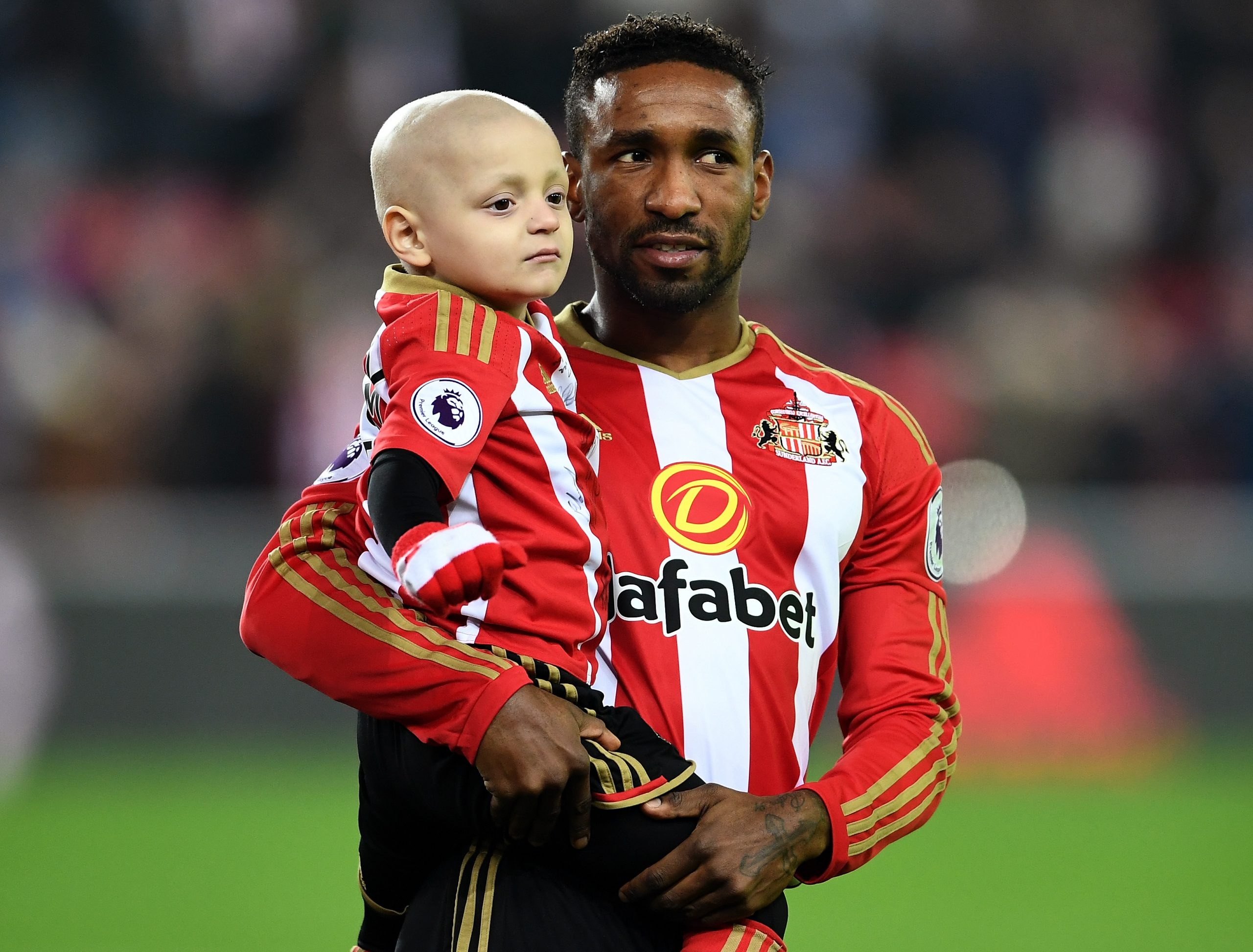 Vorrei partire da una persona per descrivere chi è Jermain Defoe: Bradley Lowery. Questo nome risuonerà sicuramente familiare a tutti gli appassionati di calcio inglese. Bradley era un bambino a cui purtroppo il destino ha riservato un destino crudele. Si ammalò di cancro in età giovanissima, malattia che lo ha portato via nel 2017 a soli 6 anni. A questo punto vi chiederete come si intreccia la triste storia di questo ragazzo con quella di Jermain Defoe? La risposta è semplice: il calcio. Bradley era un tifossimo del Sunderland, non si perdeva neanche una partita dei suoi beniamini. Le loro storie si intrecciarono proprio nel freddo settentrione inglese. Il bambino vinse la possibilità di entrare in campo mano nella mano con un giocatore del Sunderland. Destino vuole che quel giocatore sarà proprio Jermain. L’occasione avenne nel Settembre del 2016 durante la partita casalinga contro l’Everton. Da quel momento in poi Defoe e Bradley diventarono grandi amici tanto che al bambino verrà riservata l’occasione di accompagnare in campo l’attaccante inglese in moltissime altre occasioni. La loro amicizia durò fino al giorno della morte del piccolo, anche se Jermain afferma di essere ancora in contatto con la famiglia, molto riconoscente nei suoi confronti.