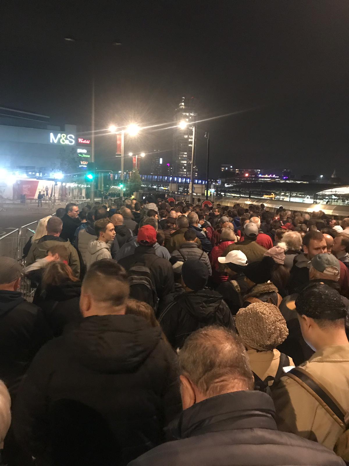 Partenza da Crysyal Palace Station, prendiamo l’ Overground in perfetto orario e scendiamo a Canada Water, linea della Tube che incrocia la Jubilee Line, fermata Stratford. Ci siamo. Da subito notiamo che i tifosi delle due squadre vanno in direzione insieme, la mescolanza di colori è bellissima.