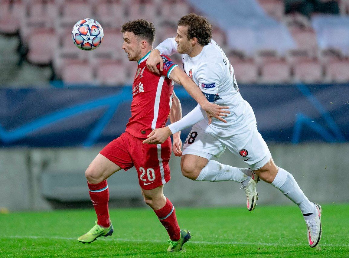 Pronti-via e la squadra di Klopp parte subito in vantaggio con un contropiede di Salah che, tutto solo davanti al portiere, lo batte con un tocco di destro. Il Liverpool non manovra benissimo ma con Jota e Origi non riesce a trovare il raddoppio da buona posizione. Il Midtjylland prova a reagire, fa molto possesso palla ma non ci sono grandi occasioni. Il primo tempo finisce così, con diversi giocatori del Liverpool non particolarmente in palla.