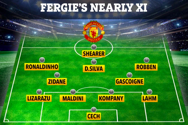 Formazione dei rimpianti (4-2-3-1):Cech; Lahm, Kompany, Maldini, Lizarazu; Gascoigne, Zidane; Robben, D. Silva, Ronaldinho; Shearer.